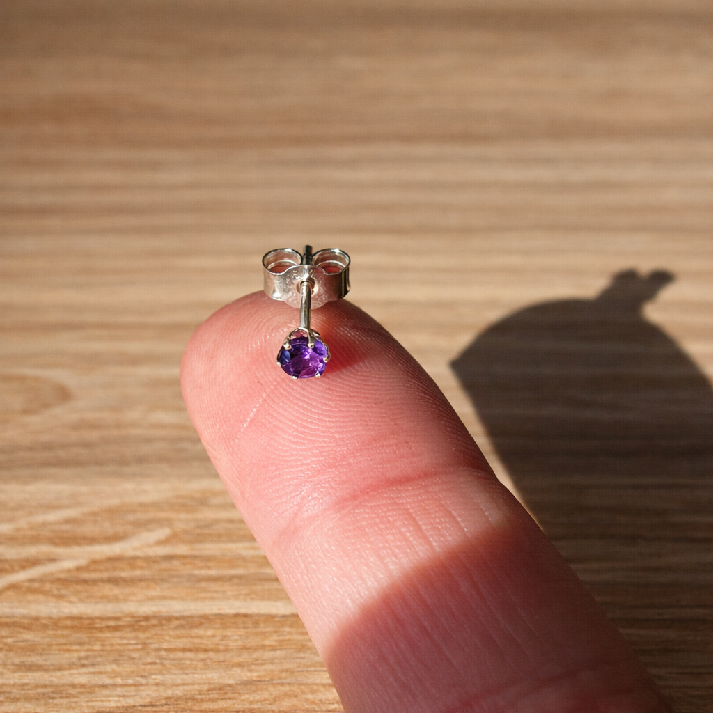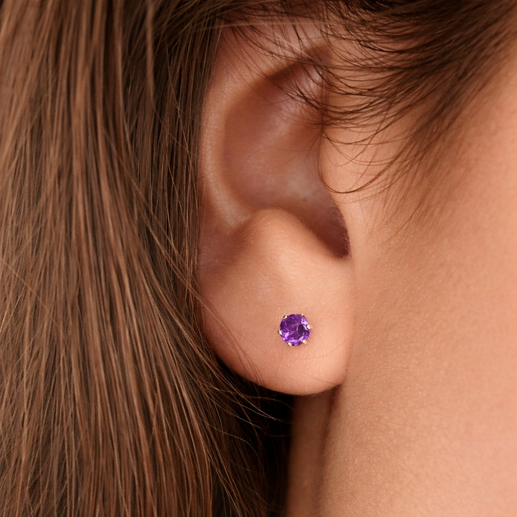 Une paire de boucles d'oreilles puce améthyste