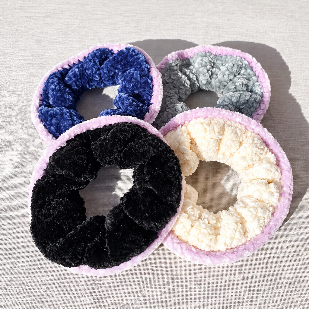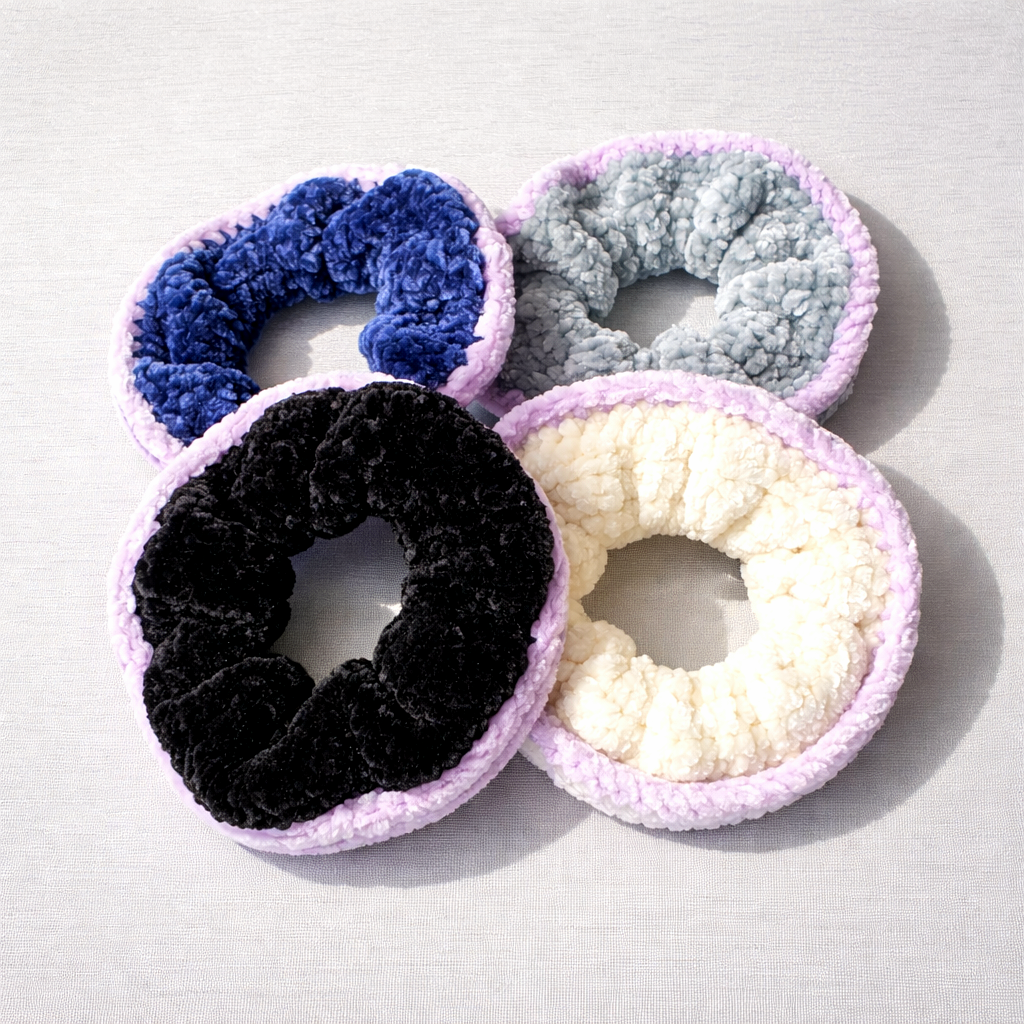 - 1 chouchou noir et violet // blanc et violet // gris et violet // bleu et violet